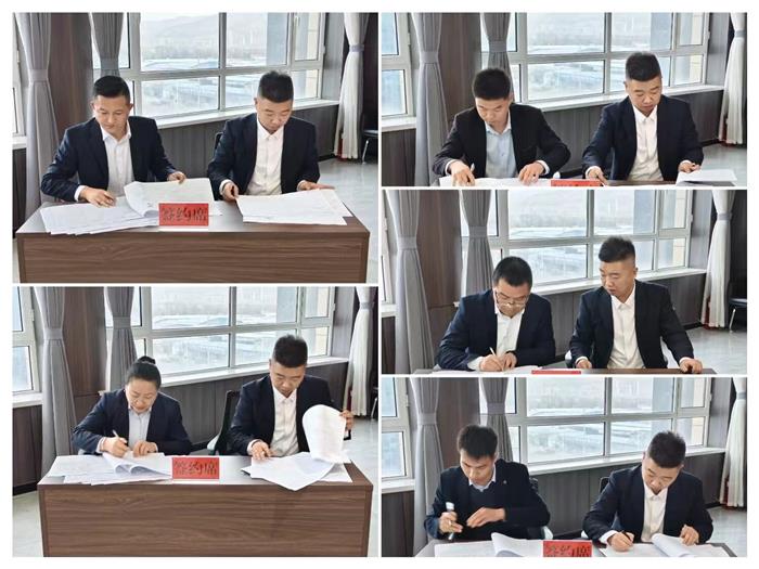 集團(tuán)公司運(yùn)營風(fēng)控中心總監(jiān) 段凱與各產(chǎn)業(yè)板塊負(fù)責(zé)人簽定年度目標(biāo)責(zé)任書